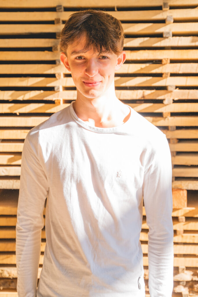 Henry joined our team in 2022, wanting to find a workplace that suited his love of the outdoors. Studying outdoor education at college and working at the mill means that Henry never has a quiet day. He usually teams up with Ed and helps on the bottom saw, sawing trees into board form ready for drying. When he’s not working, he’s most often off kayaking with his fellow workmate Leif.